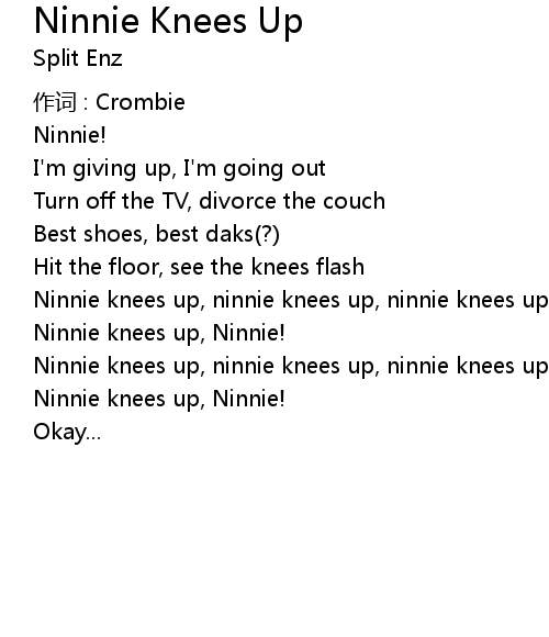 | Ninnie knees up, ninnie knees up, ninnie knees up yeah! | |