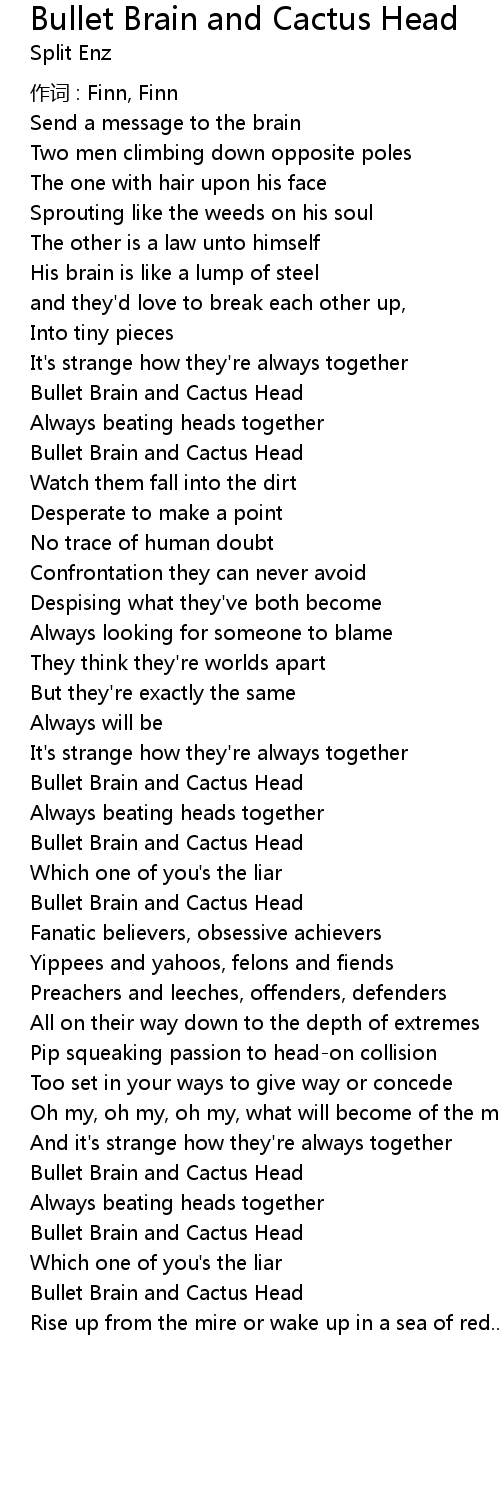 | Song | Bullet Brain and Cactus Head |