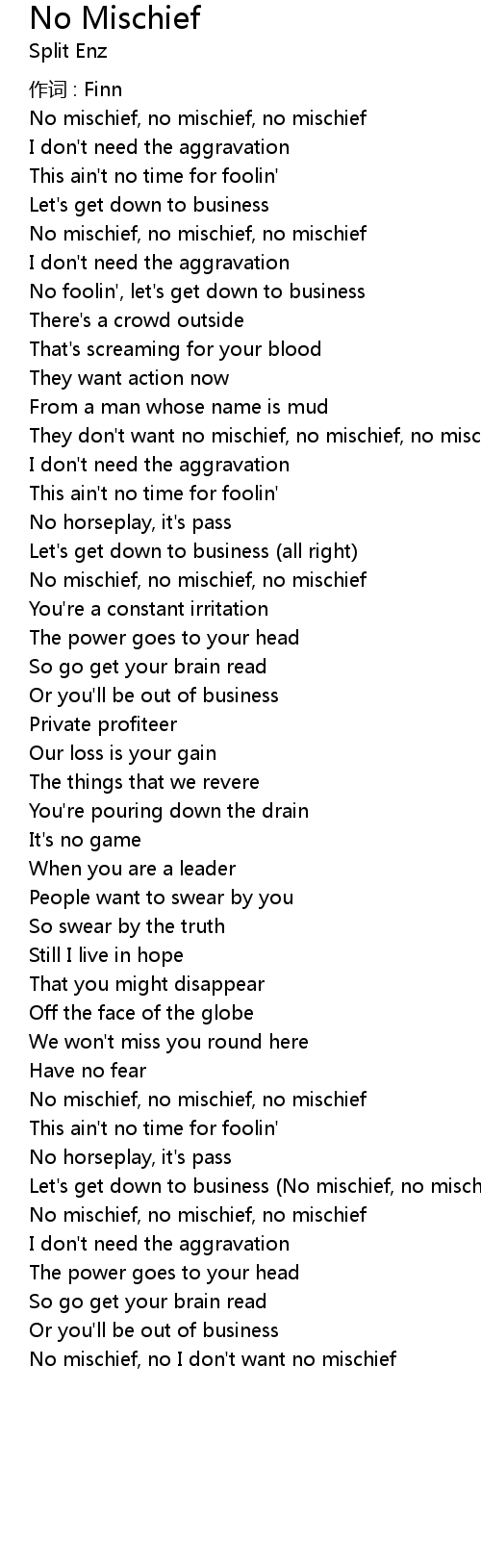 | Let' s get down to business No mischief, no mischief | |