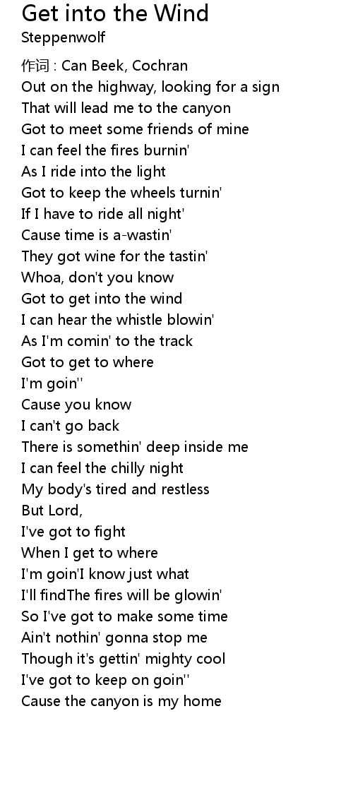 | Song | Get into the Wind |