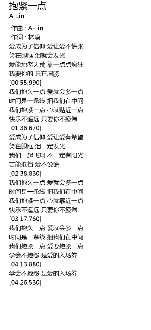 | [00:00.00] | 作曲 : A-Lin |
