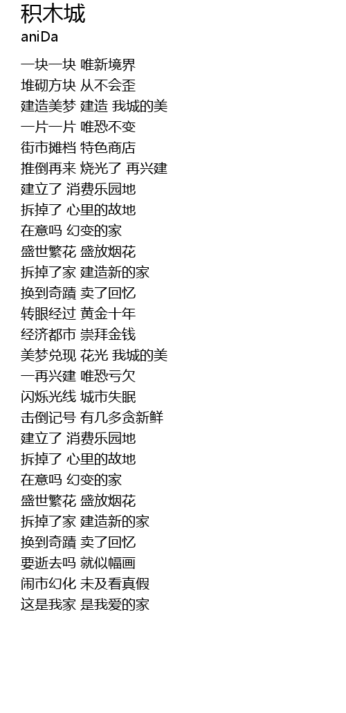 | [00:43.519] | 建造美梦 建造 我城的美 |