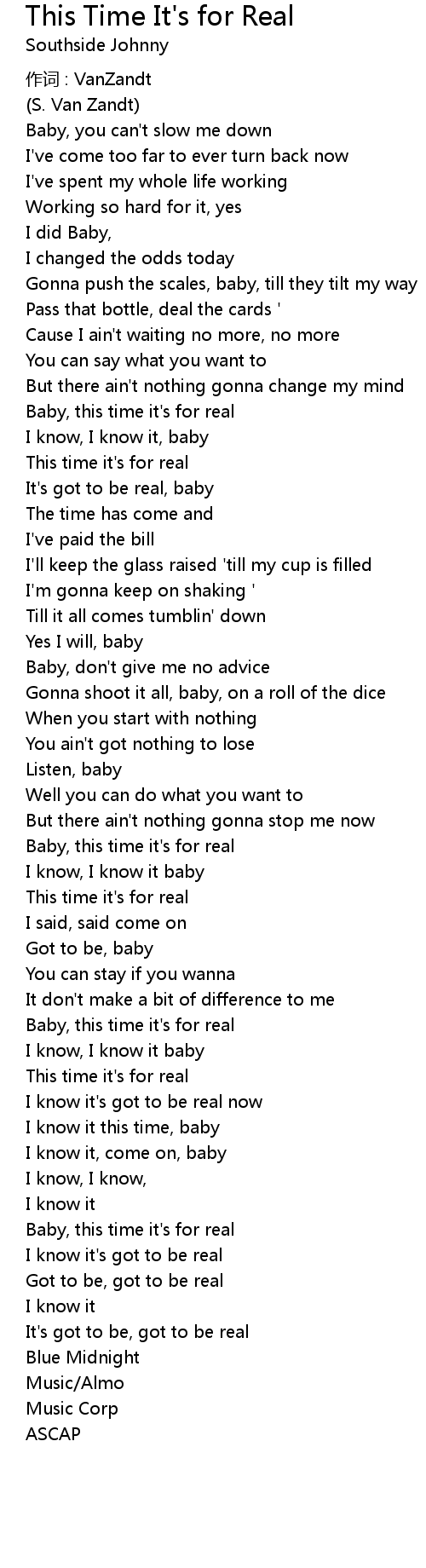 | Baby, this time it' s for real | |