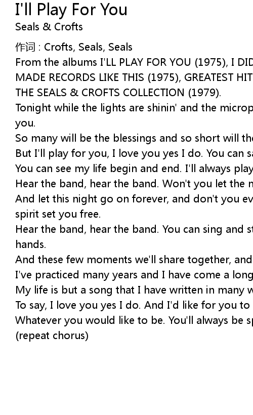 | Song | I'll Play For You |