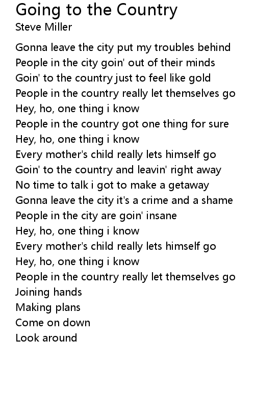 Goin' to the country and leavin' right away |