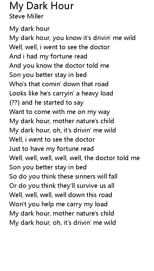 My dark hour, you know it's drivin' me wild |