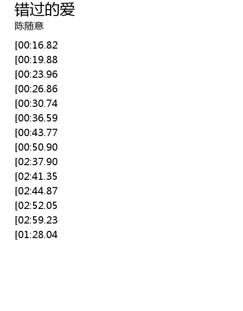 | [03:27.73][02:59.23][01:19.35] | 错过的爱 亲像梦一摊 |