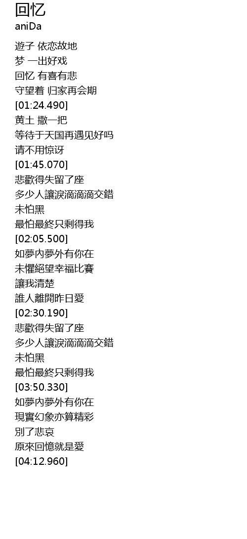 | [04:05.720] | yuán lái huí yì jiù shì ài |