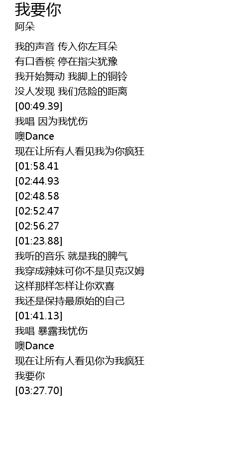 | [03:00.25][02:44.93][01:58.70][01:06.83] | wo yao ni wo yao ni xiang qi |