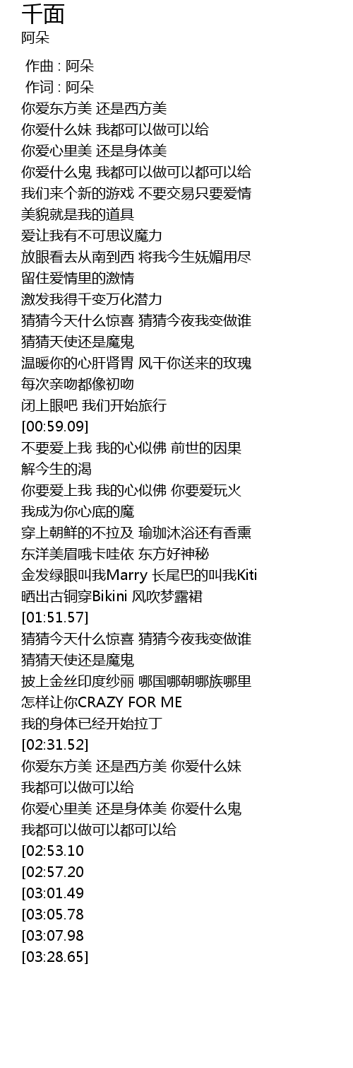 | [00:00.00] | zuò qǔ : ā duǒ |