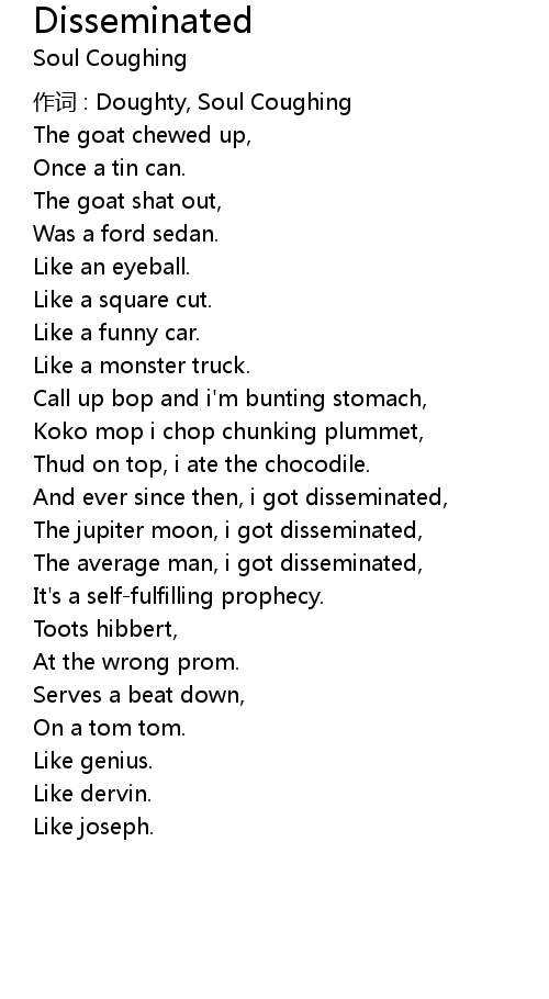 | 作词 : Doughty, Soul Coughing | |