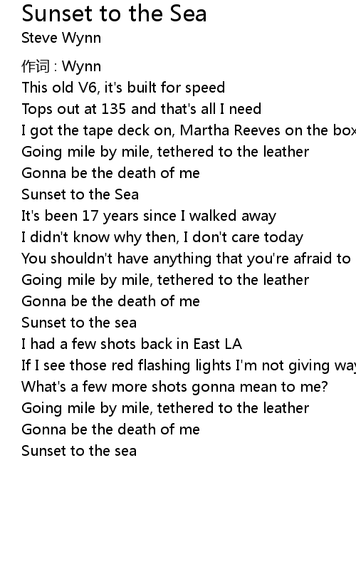 | Song | Sunset to the Sea |