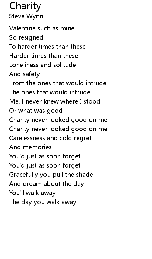 | Charity never looked good on me | |
