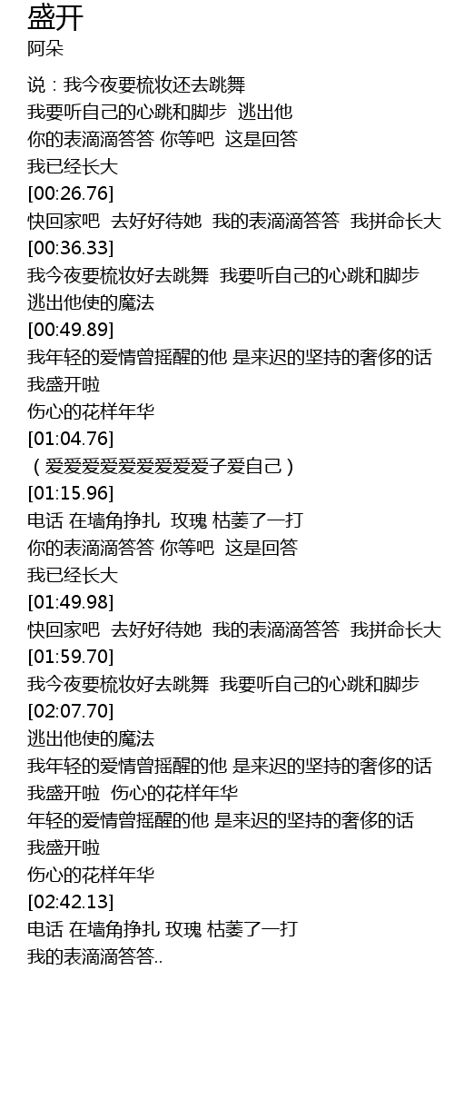 | [02:21.90] | 我盛开啦 伤心的花样年华 |
