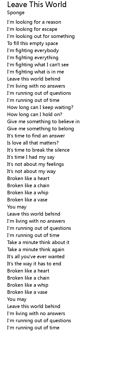 Leave this world behind |