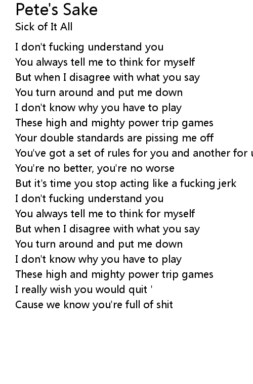 But it's time you stop acting like a fucking jerk |