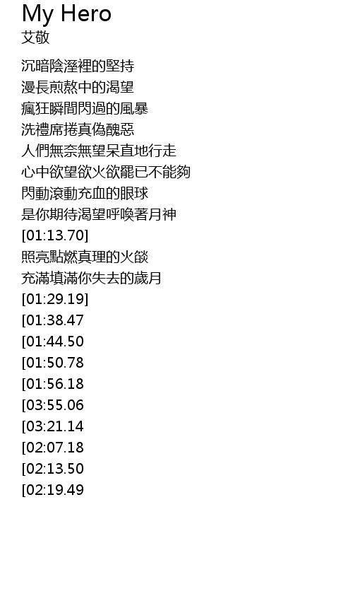 | [03:25.46][02:07.18] | MY HERO 我孤獨的朋友 |