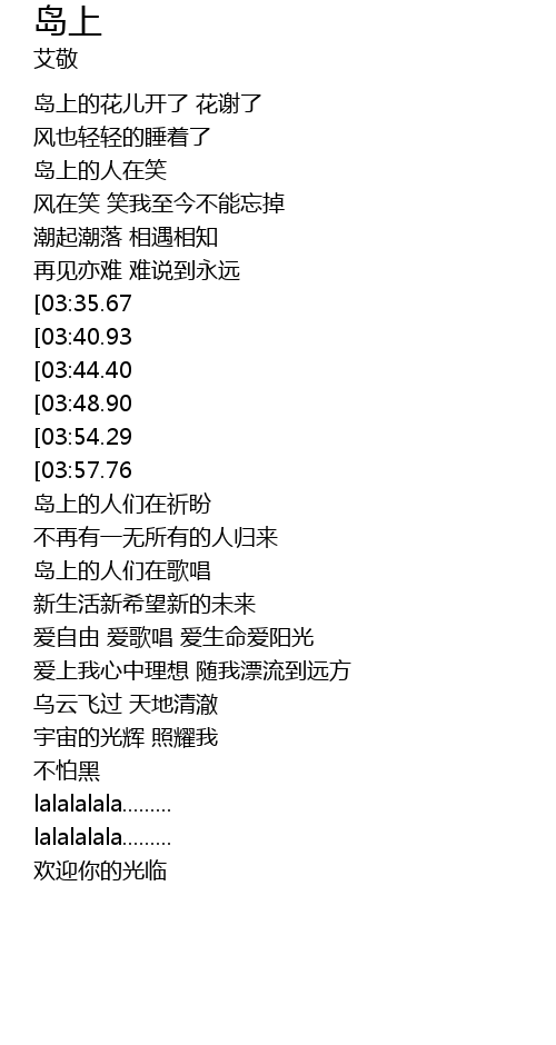 | [00:16.95] | 岛上的花儿开了 花谢了 |