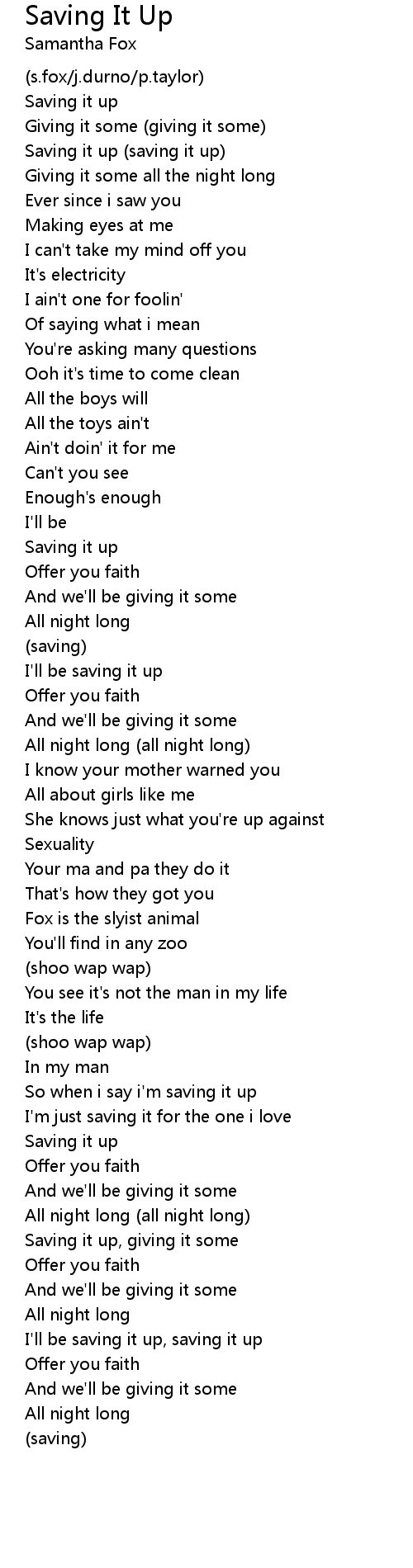 I'll be saving it up, saving it up |