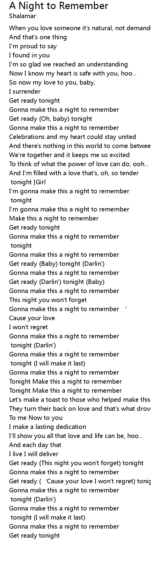 | Tonight Make this a night to remember | |