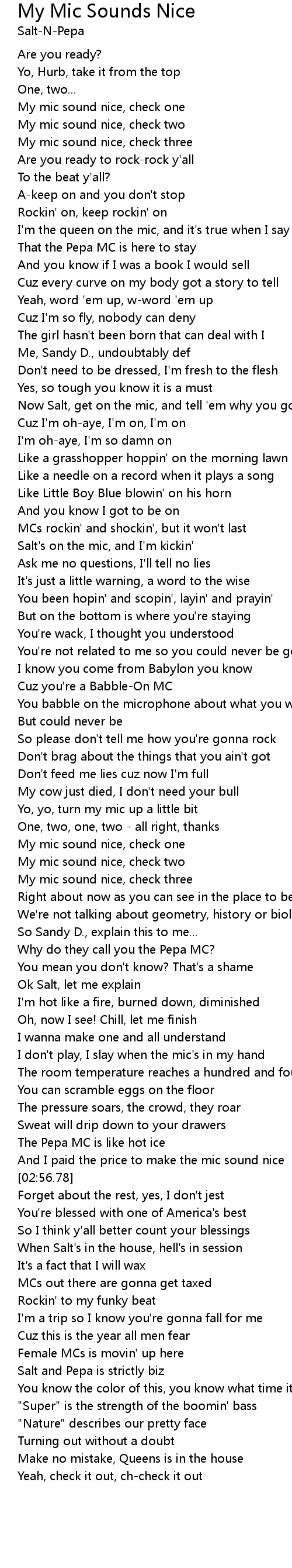 Salt's on the mic, and I'm kickin' |