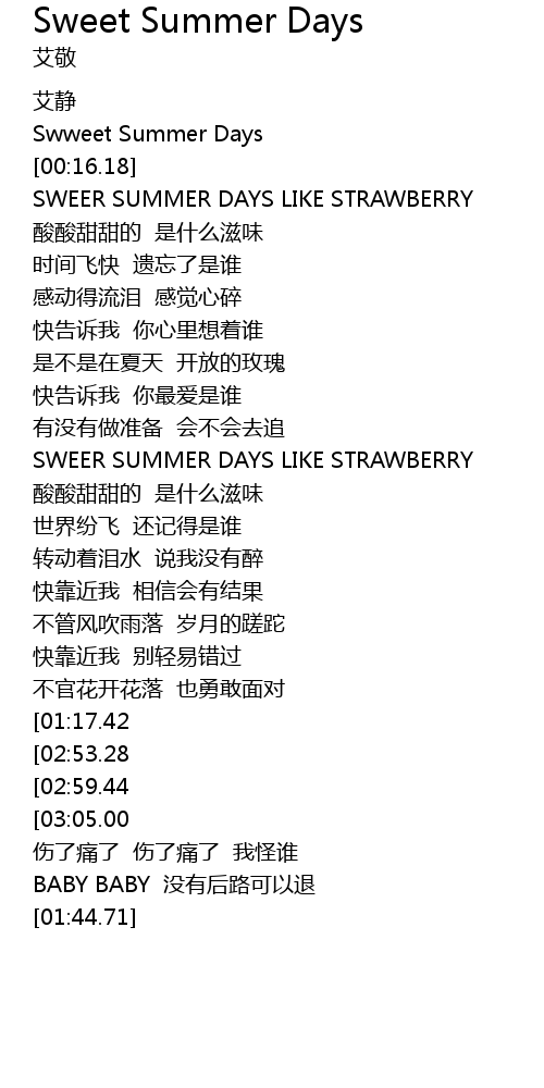 | [01:54.22] | SWEER SUMMER DAYS LIKE STRAWBERRY |