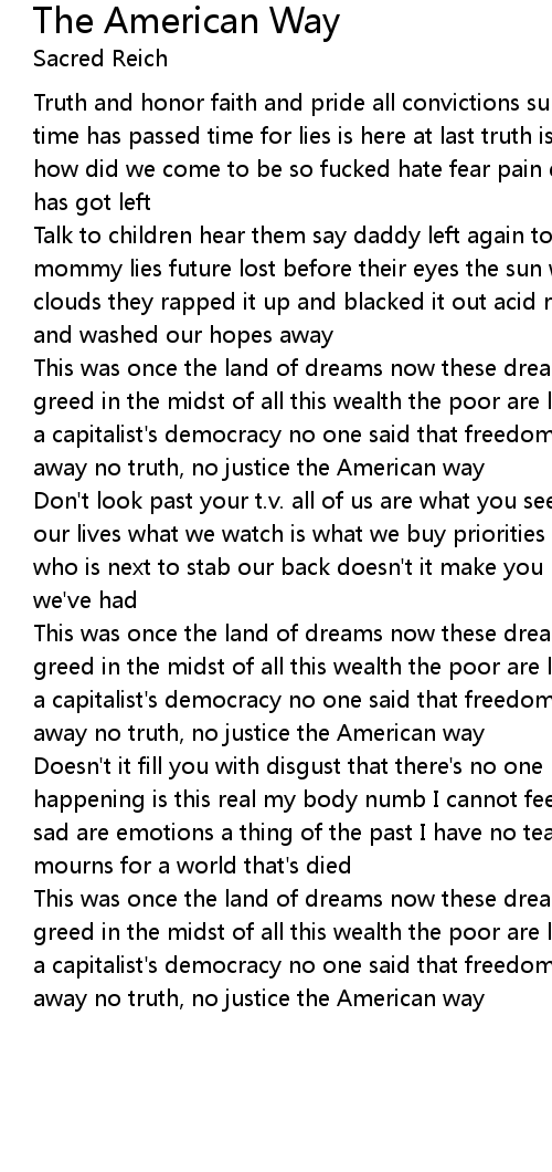 Truth and honor faith and pride all convictions surely died honesties |