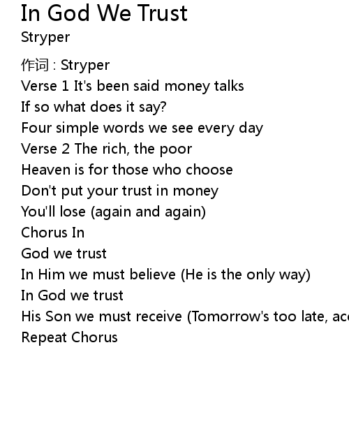 | Song | In God We Trust |