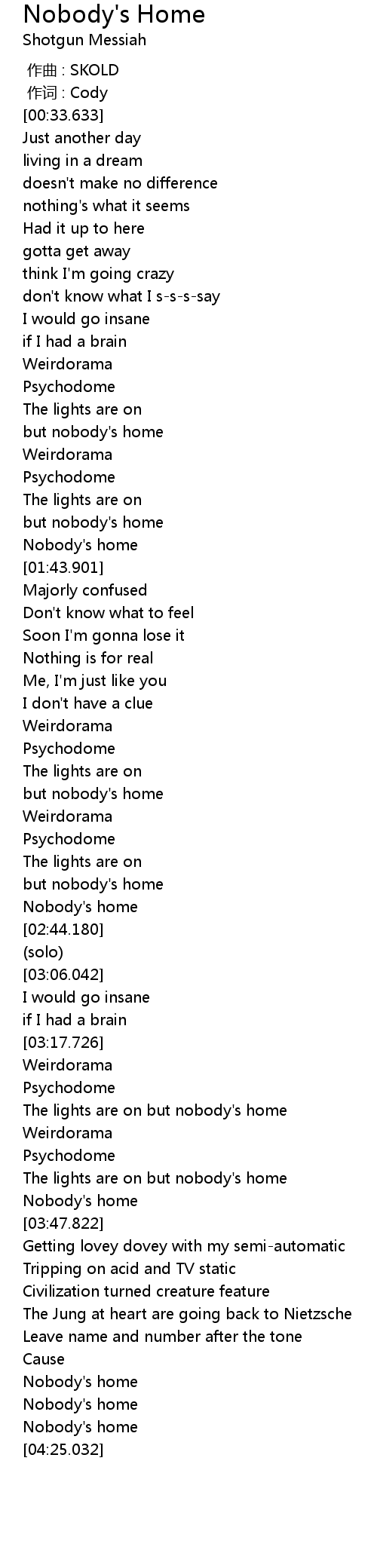 | [02:24.427] | but nobody' s home |