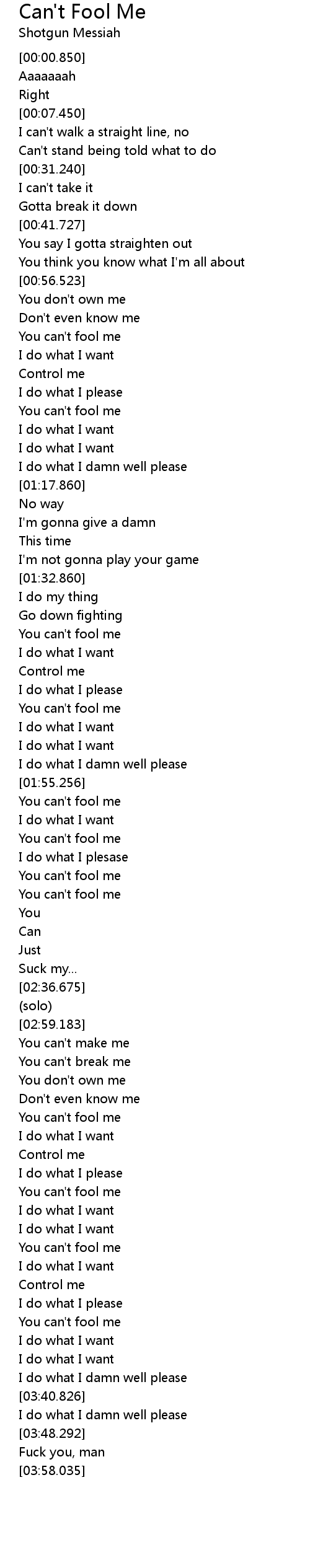 You can't fool me |