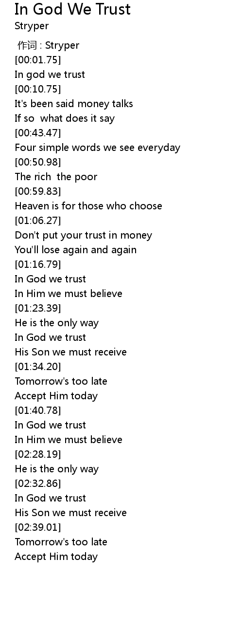 | [02:33.42] | In God we trust |