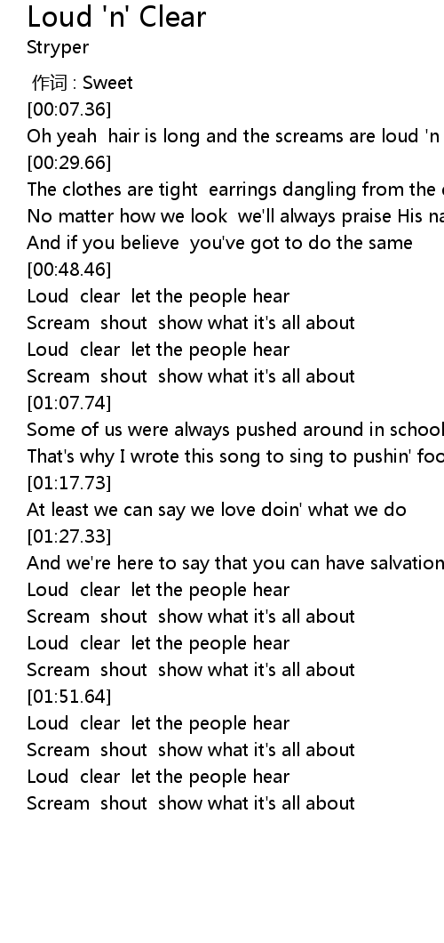 | [00:59.20] | Loud clear let the people hear |