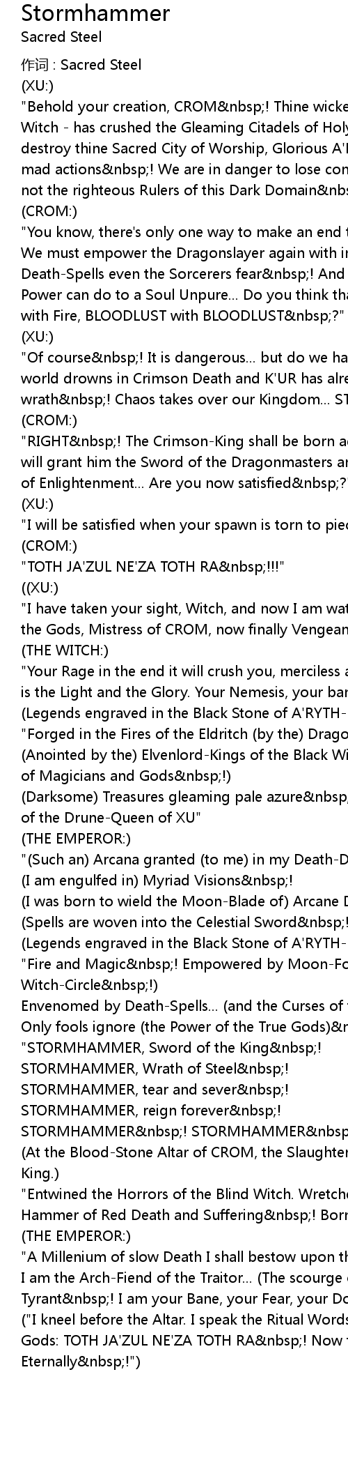 | Hammer of Red Death and Suffering ! Born to rule (and) to enslave !" | |