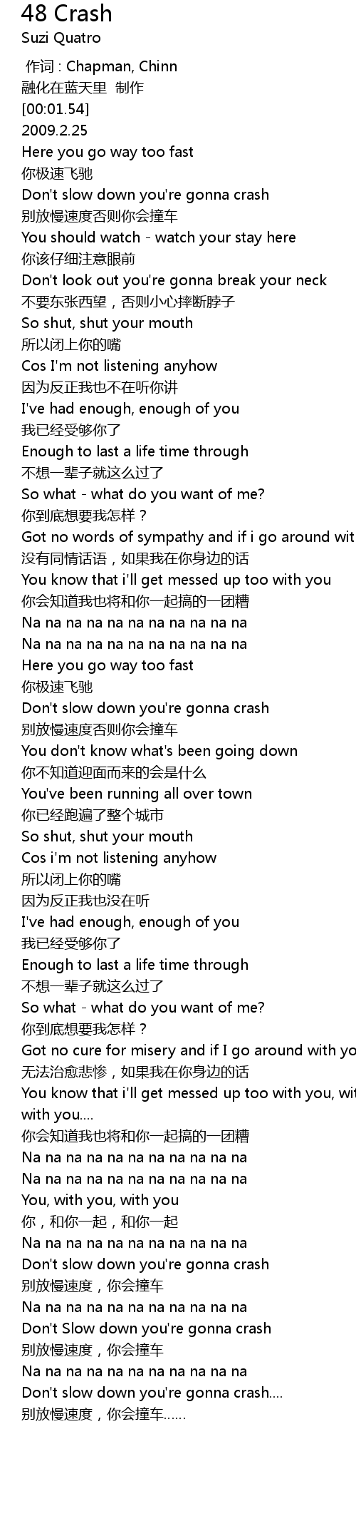 | [02:27.28] | Don't Slow down you're gonna crash |