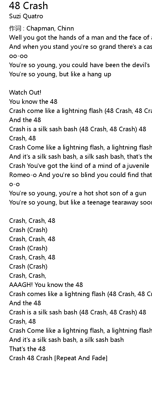 | Crash come like a lightning flash (48 Crash, 48 Crash) | |