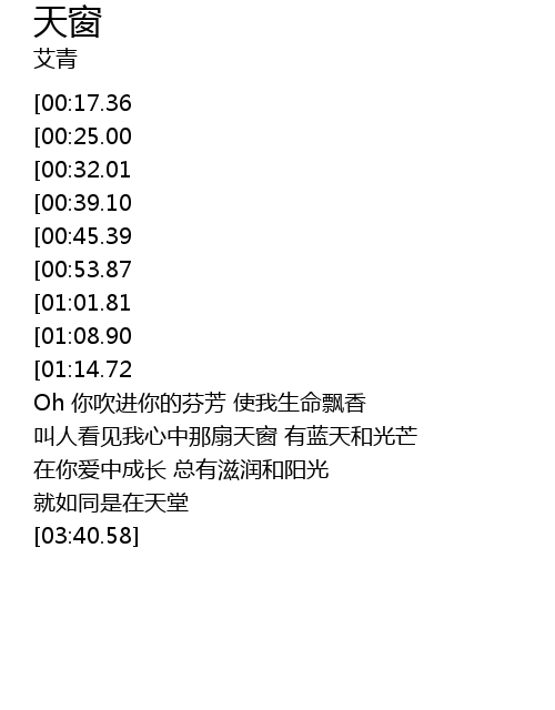 | [03:19.52] | 叫人看见我心中那扇天窗 有蓝天和光芒 |