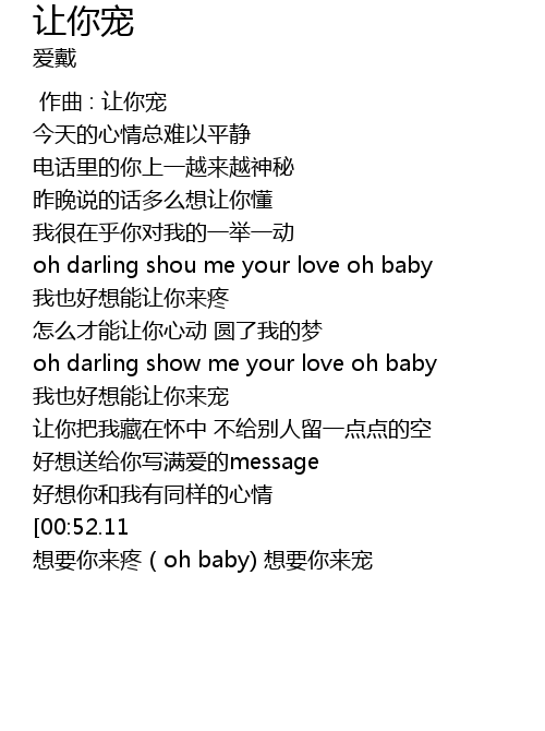 | [01:13.15] | 想要你来疼(oh baby) 想要你来宠 |