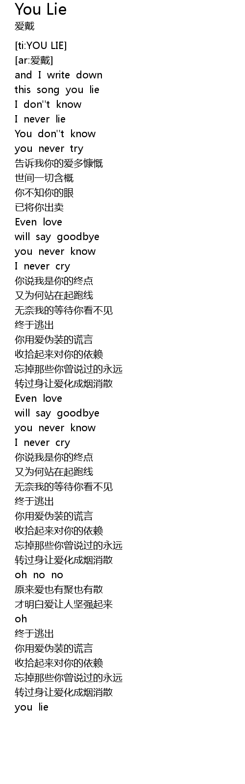| [03:38.770] | nǐ yòng ài wěi zhuāng de huǎng yán |