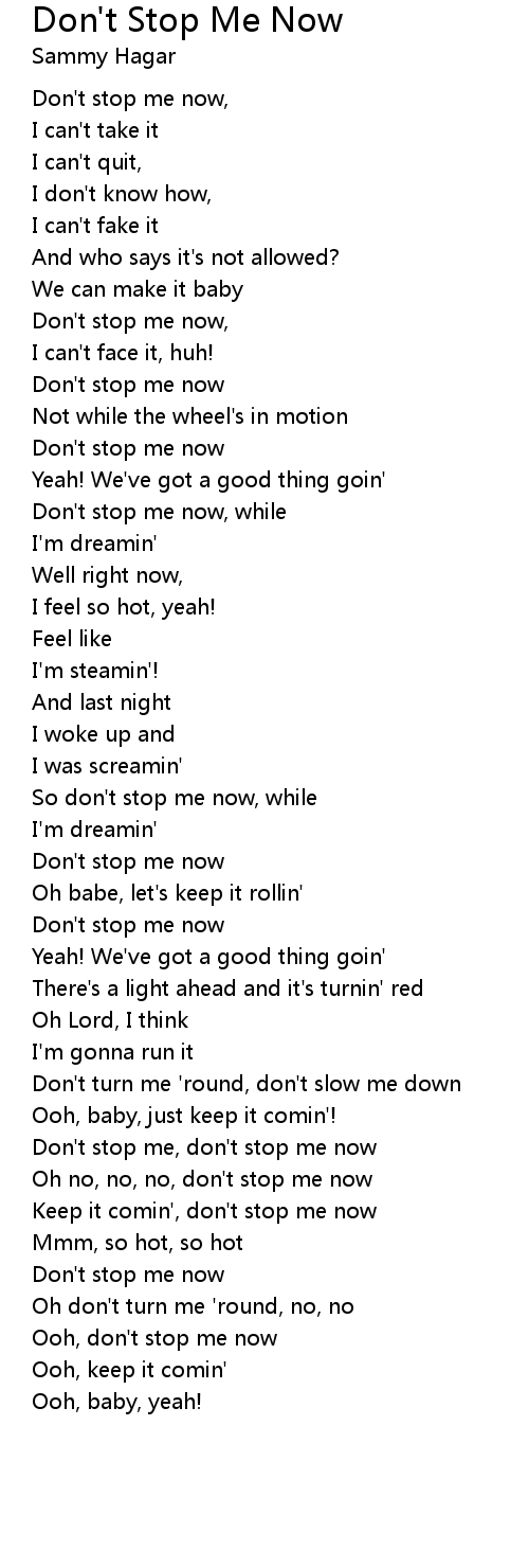 So don't stop me now, while |