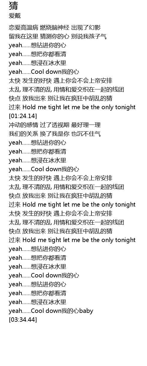 | [00:50.07] | yeah......Cool down我的心 |