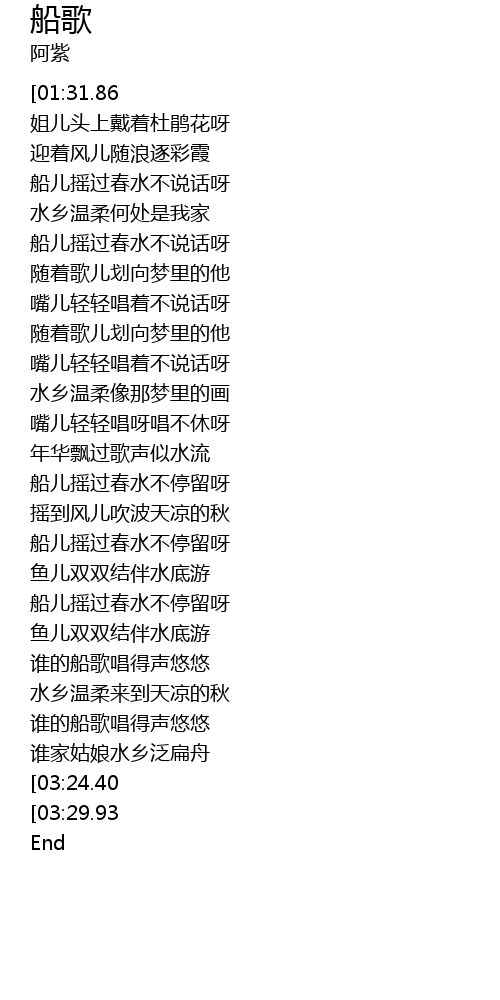 [03:01.42] 谁的船歌唱得声悠悠