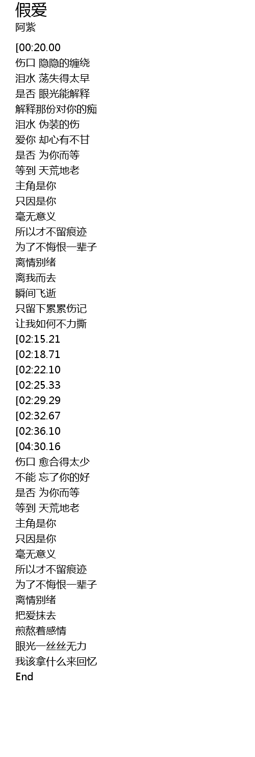 | [04:37.63][04:30.16][02:39.37] | 维持假爱一辈子 |