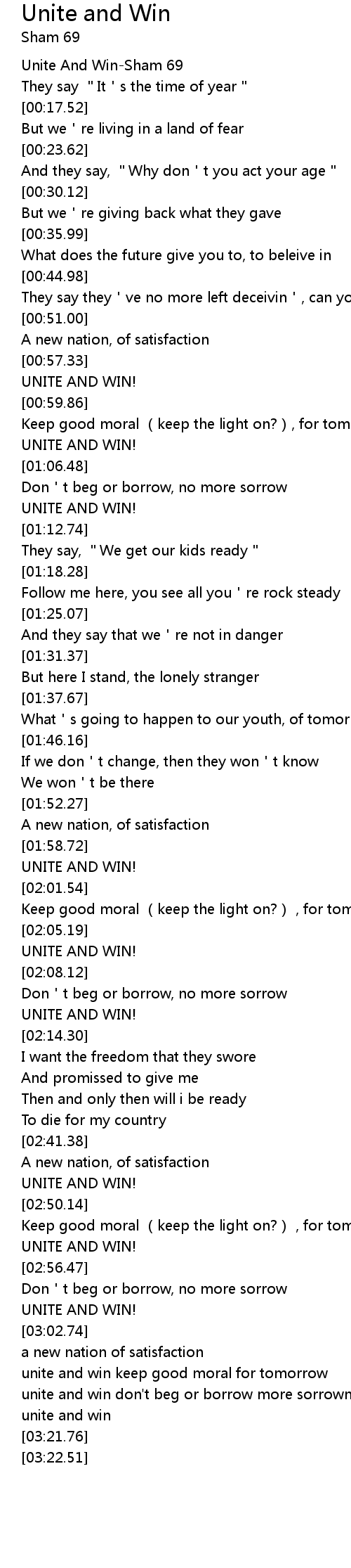 | [03:12.31] | unite and win don't beg or borrow more sorrowno |