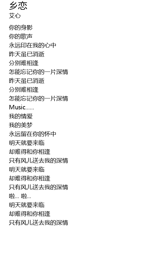| Song | 乡恋 |