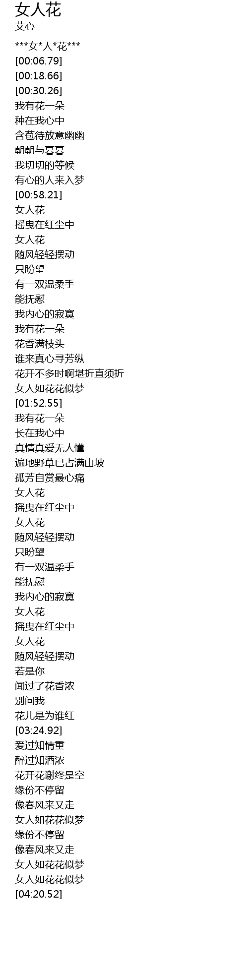 | [04:08.27] | nv ren ru hua hua shi meng |
