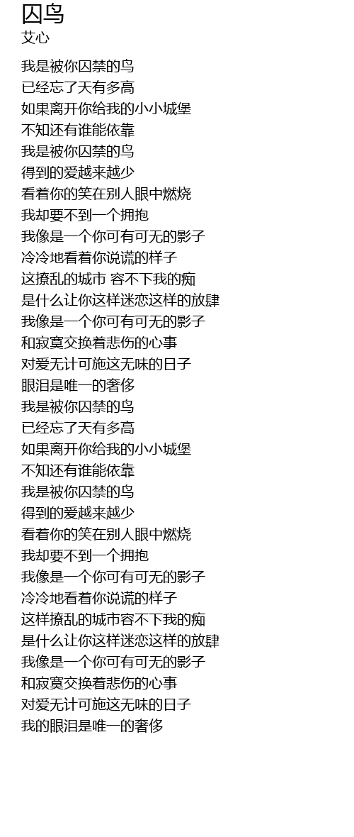 | [00:55.390] | 我是被你囚禁的鸟 |