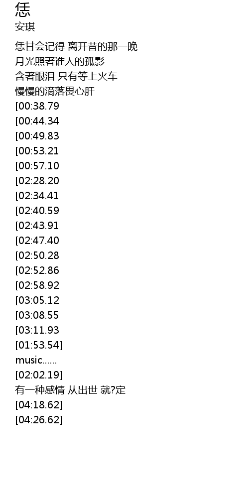 [02:04.66][00:38.79] 恁甘记得离开昔的那一晚