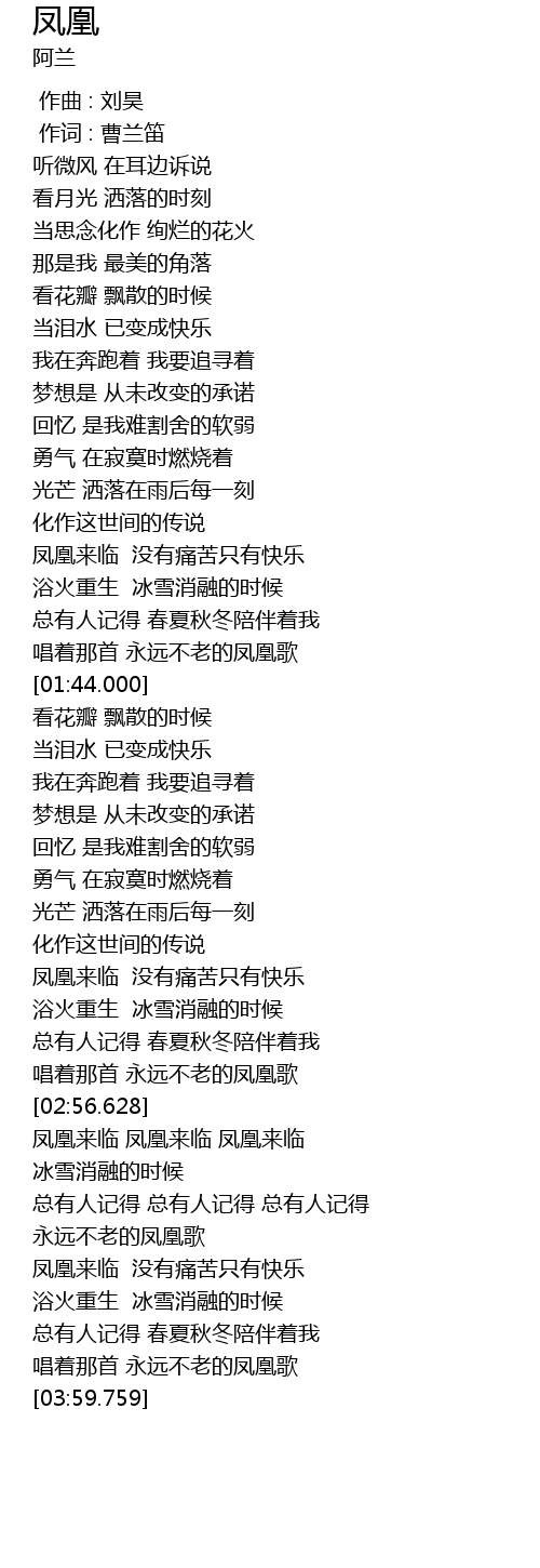 | [03:53.499] | 唱着那首 永远不老的凤凰歌 |