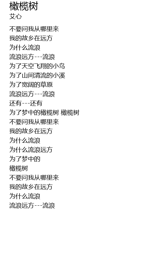 | [01:14.140] | 为了梦中的橄榄树 橄榄树 |