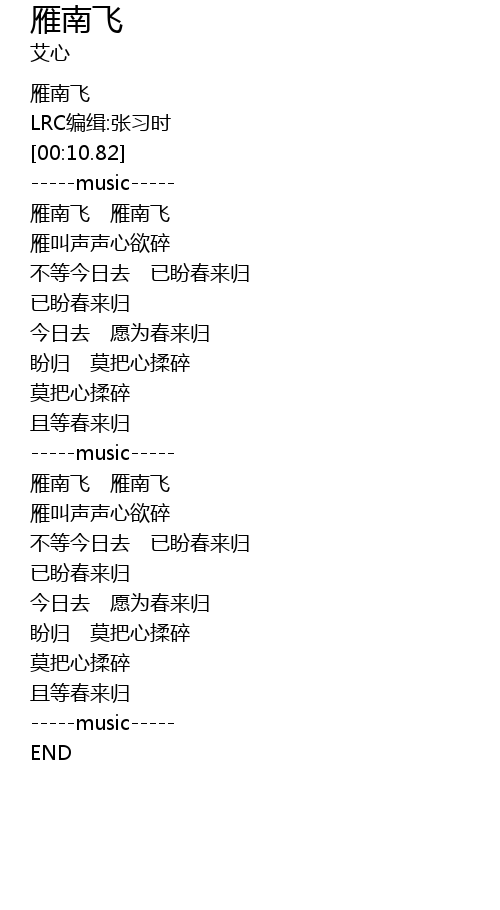 | [01:39.18] | yàn nán fēi yàn nán fēi |
